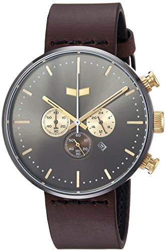 Vestal 'Roosevelt Chrono' Quartz Stainless Steel and Leather Dress Watch, Color:Brown (Model: RSC42L02.DB)