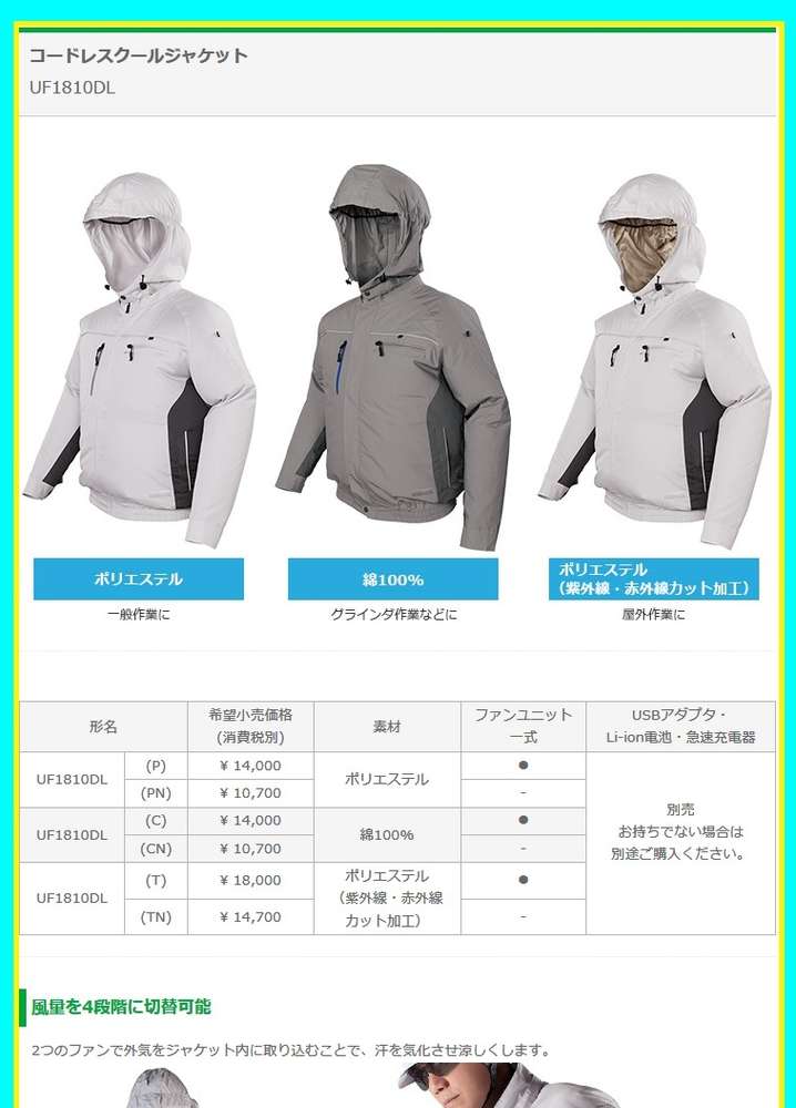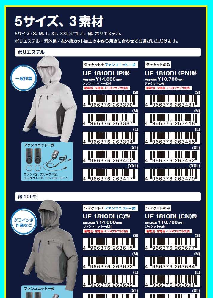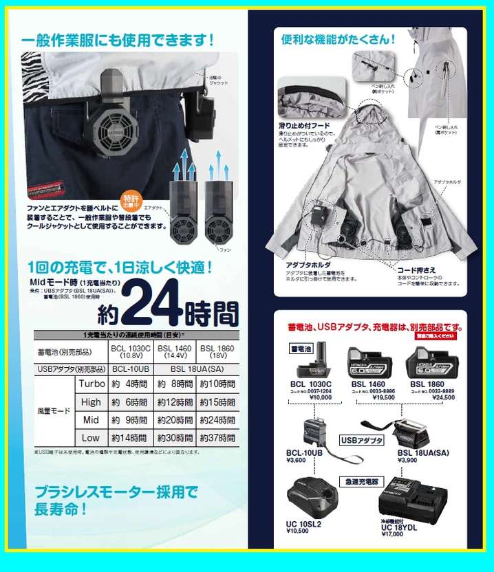 ●ファンユニット一式、USBアダプタ、蓄電池、充電器は別売りです