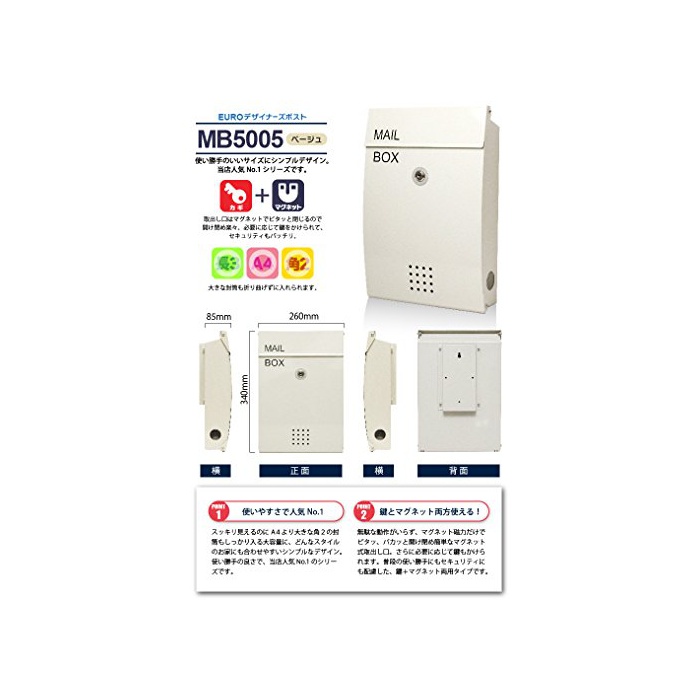 소재비 본체:스틸 중량1.8kg 【부속품】 열쇠×2 앵커(Φ8mm)×4 나사×4