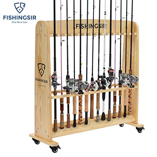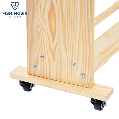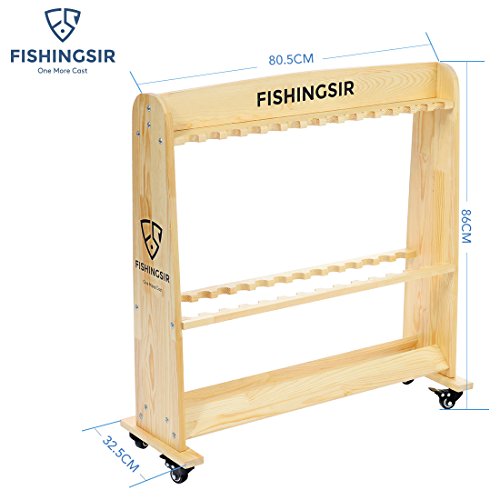-. Feature : HIGH QUALITY. Lightweight and sturdy solid wood, handcrafted pine rolling fishing rods rack, reinforced manual grinding process, guarantee high performance; / SUPER SPACE SAVER. Store UP TO 28 rod and reel combinations side by side, the assembled dimensions is 80.5cm (L) x 30cm (W) x 86cm (H). / CONVENIENT & ROLLING. Easy to Assemble and Use. Suitable for spinning rod ,trolling rod,surf rod and any rod types with the reels on. 4 added heavy-duty locking wheels facilitate simple mobility; / PROTECTS & ORGANIZES. Great for storing fishing poles on boat, truck, or at home or garage. Perfect for spinning, trolling,surfing offshore ,onshore fishing to organize your fishing tackle. / FREE GIFT. Each FishingSir brand fishing rods rack comes with one pair of cut resistance gloves to protect your hands from hurting when putting it together, It also can be used for hunting,garden, kitchen. Great gift for all the fishermen!