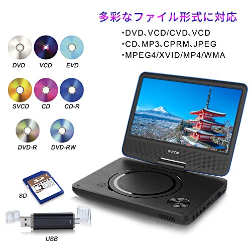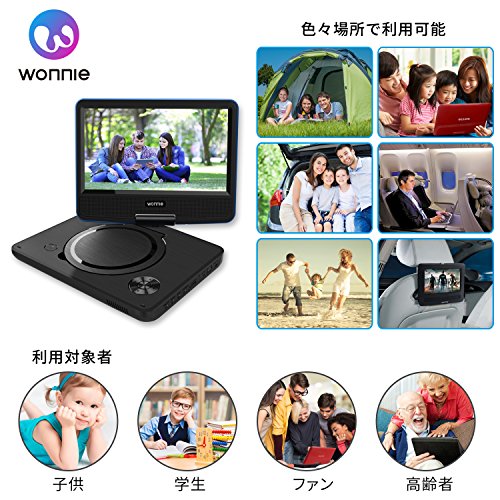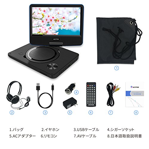 ■270度回転液晶モニター 液晶画面が回転しディスプレイモニターにもなる。 | ■リージョンフリー こちらの商品では「リージョンフリー」を採用し、全世界のどの地域の規格であっても再生する事が出来ます。 また字幕の表示にも対応しており海外の映画でも十分にお楽しみいただけます。 | ■付属品 ポータブルDVDプレーヤー, バックパック, イヤホン, AVケーブル, シガーソケットアダプター, リモコン, ACアダプター(PSE認証済み)、取扱説明書(保証書付) |