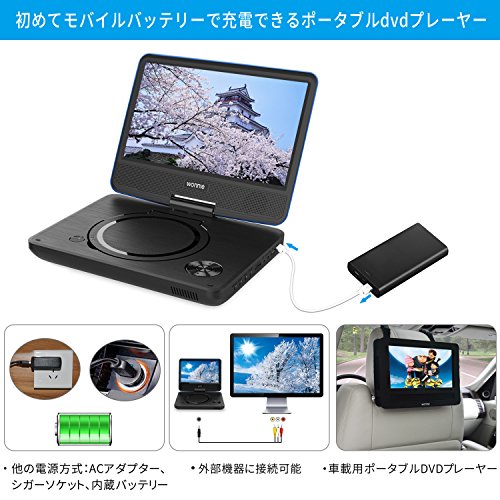 車で充電可能なので、長距離旅行やドライバ間、車内でもDVDを楽しめます。子供にぐずり対策に効果的。