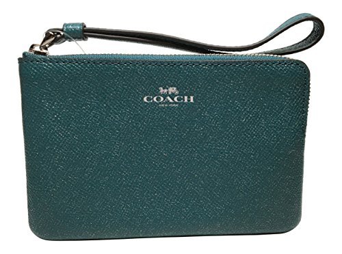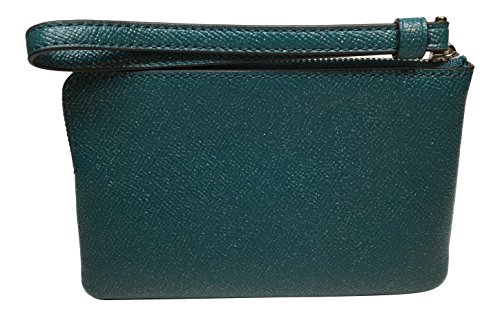 Coach Crossgrain Leather Glitter Corner Zip Wristlet, Dark Teal