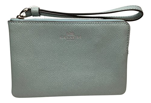 Coach Crossgrain Leather Glitter Corner Zip Wristlet, Aqua