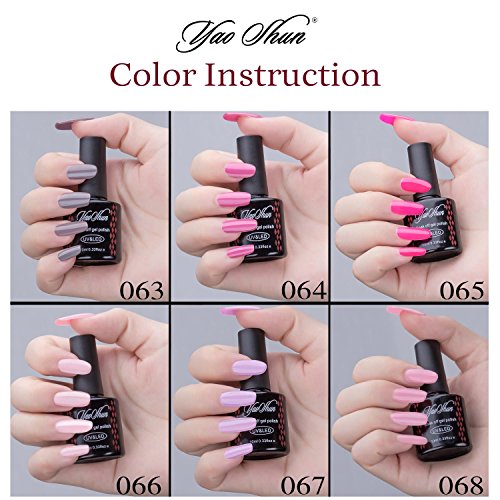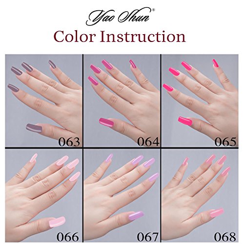 -. Feature : 1. Exclusive Brand: Yaoshun ! Factory Manufacture ! About 20 years experience on producing Nail Art Products.We have totally 300 colors for Choice. / 2. Features: on like nail polish, wears like Gels, soak off in minutes.Attention: Should be cure under uv or led lamp. / 3. Color : 063-gray; 064- bubblegum pink ;065-hot pink; 067-purple; 066-rose blush; 068-punch pink. / 4. High qualit4. High quality, Soak-off, Long Last, no bad Smell, no harm, no used, Brand New. Can last over three weeks.y, Soak-off, Long Last, no bad Smell, no harm, no used, Brand New. Can last over three weeks. / 5.If there is any problem, please feel free to contact us,we will try our best to help you.