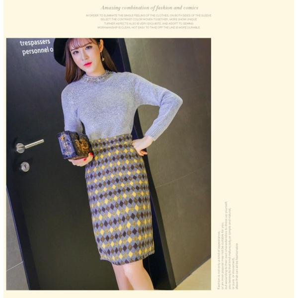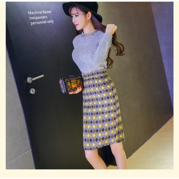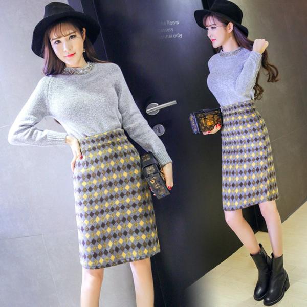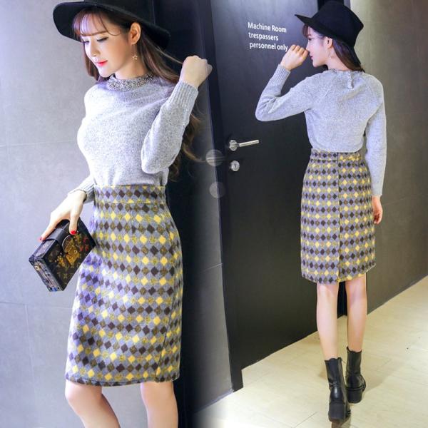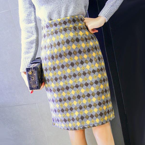 ワンポイントで明るめのカラーリングの秋冬ウールスカート。