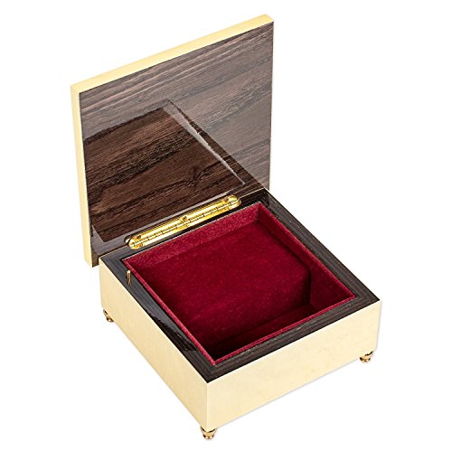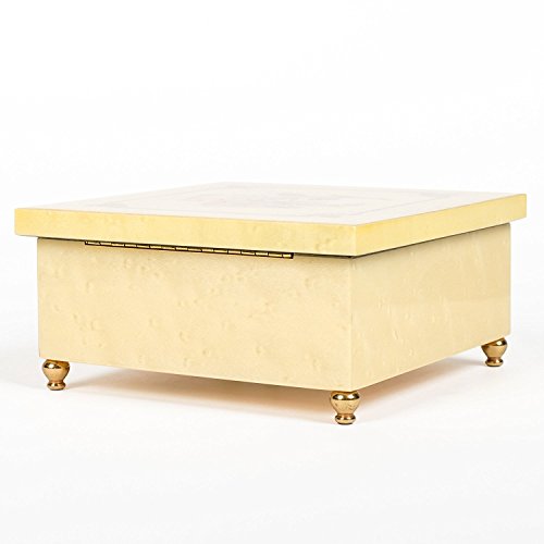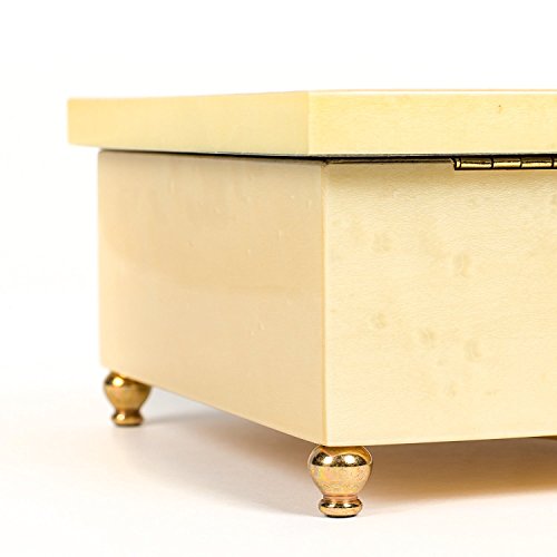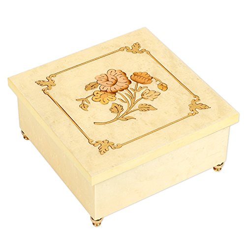 Floral White Italian Hand Crafted Inlaid Wood Jewelry Music Box Plays Barcarolle of Hoffman