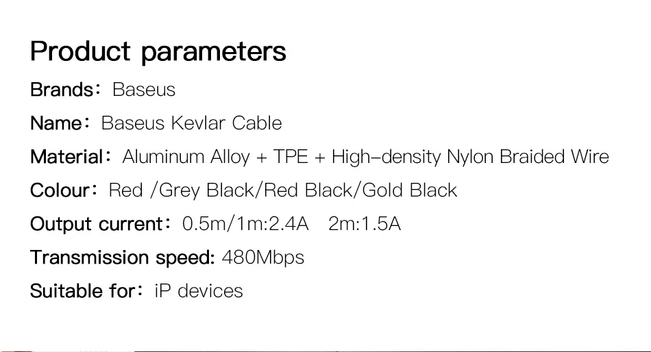 Type:Baseus Kevlar Cable