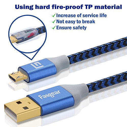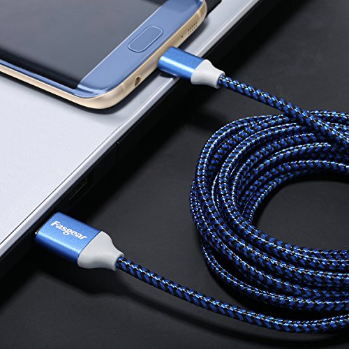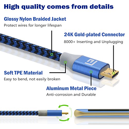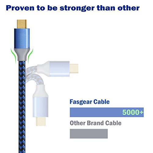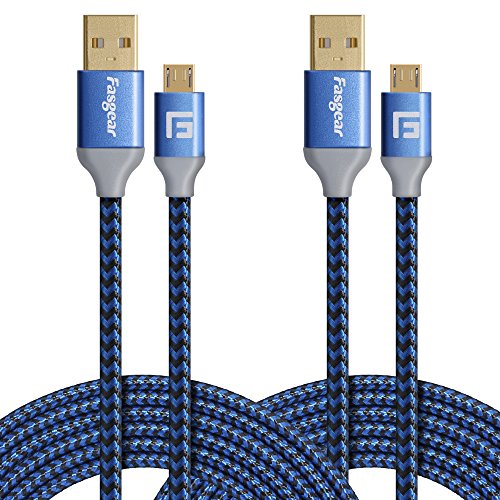 Fasgear 2 pcs 10ft/3M Nylon Braided Micro USB Cable With Gold-Plated Navy-Blue Connector For Samsung, LG, HTC, Nokia, Android Phone And More (2 pcs Black)