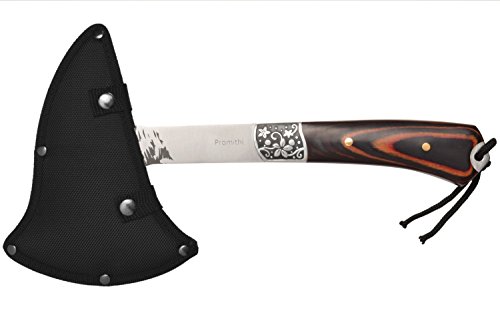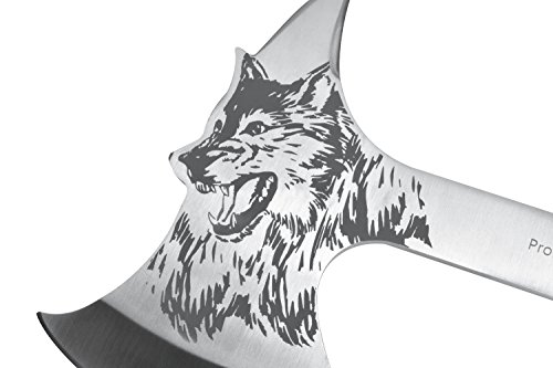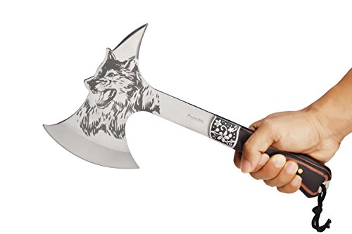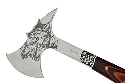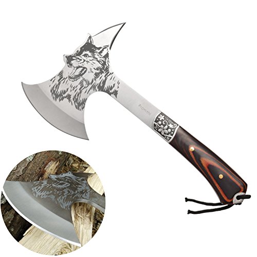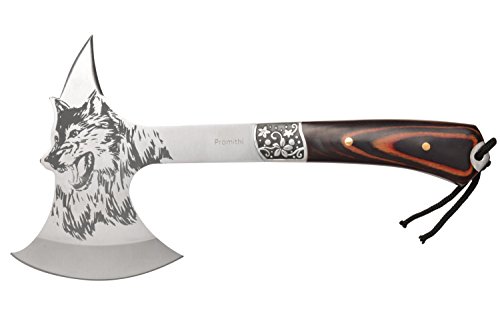 Promithi hatchet Wolf Head Print Steel Hawk Axe Hatchet with Wooden Grip & Nylon Sheath Camping Hunting Survival Outdoor Tactical Axe Head