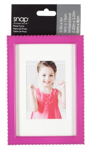Bright pink mini matted tabletop frame with beaded border. Add a splash of color to any room. Displays a 3.5-inch by 5-inch photo without the mat or a 2-inch by 3-inch photo with the mat.
