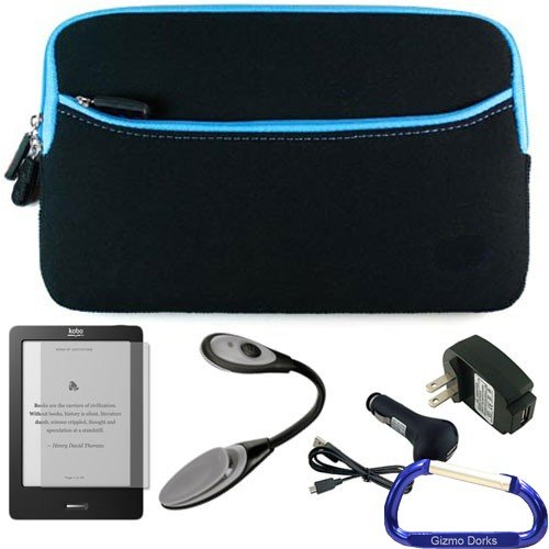 -. Title : Gizmo Dorks Soft Neoprene Zipper Case (Black with Blue Trim), Screen Protector, LED Light, and Charging Bundle with Carabiner Key Chain for the Kobo eReader Touch Edition