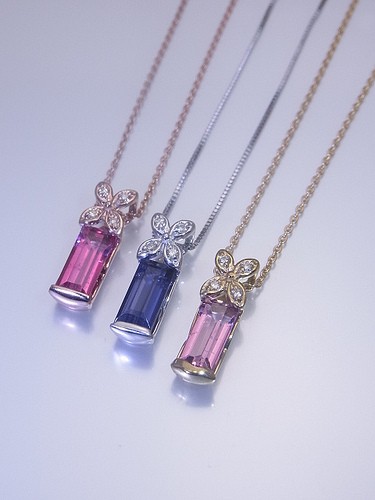 ピンクトルマリン・アイオライトの鮮やかなでキュートなネックレスです。アイオライトはホワイトゴールド素材です。ピンクトルマリンはピンクゴールド・イエローゴールド素材からお選びいただけます。