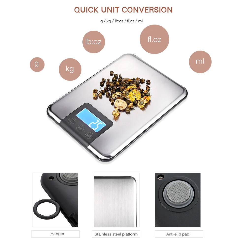 Package Includes:1 x Kitchen Scale, 1 x English and Chinese Manual