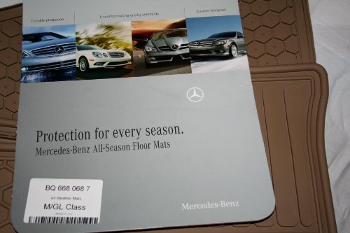 -. Brand : Mercedes-Benz -. Color : Beige -. Feature : The hardwearing all-season mats help protect the interior when the weather is rainy, when there's slush underfoot and when shoes are muddy / Their precision fit provides optimum protection for the original floor covering and the raised edge prevents liquid from seeping onto the floor -. Label : Mercedes-Benz -. Manufacturer : Mercedes-Benz -. ManufacturerPartsWarrantyDescription : Parts -. Model : Q6680687 -. MPN : Q6680687 -. PackageQuantity : 1 -. PartNumber : Q6680687 -. ProductGroup : Automotive Parts and Accessories -. ProductTypeName : AUTO_ACCESSORY -. Publisher : Mercedes-Benz -. Studio : Mercedes-Benz -. Title : Genuine Mercedes-Benz Q6680687 - Rubber Floor Mats W164 ML320 ML350 ML550 Beige
