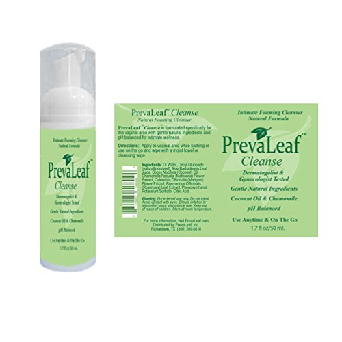 -. Binding : Health and Beauty -. Brand : PrevaLeaf -. Color : Blue -. Department : personal care -. EAN : 0731882508079 -. Feature : Dermatologist and Gynecologist Tested & Approved / pH balanced for the vaginal area / Use on the go or in the shower / Two formulations: natural and tea tree -. IsAdultProduct : 0 -. Label : PrevaLeaf Inc. -. Manufacturer : PrevaLeaf Inc. -. MPN : Cleanse - 2 pk -. PackageQuantity : 20 -. PartNumber : Cleanse - 2 pk -. ProductGroup : Health and Beauty -. ProductTypeName : HEALTH_PERSONAL_CARE -. Publisher : PrevaLeaf Inc. -. Studio : PrevaLeaf Inc. -. Title : PrevaLeaf Cleanse Intimate Foaming Cleansers -. UPC : 731882508079