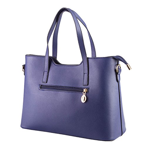 {DURABLE MATERIAL}PU Leather Tote with durable polyester lining, zippered closure, and silver tone hardware. Zipper closure for your security.