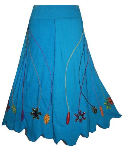 -. Binding : Apparel -. Brand : Agan Traders -. Department : womens -. Feature : New design hand crafted flower patches facing upside down. / 100% soft rib stretchy cotton; Very comfortable and fits nicely. / NOTE: None of the two are exactly the same. The embroidery and patches would vary. / Hand wash in a cold water. Line dry. Do not bleach. / Color is faded with stone wash. -. ProductGroup : Apparel -. ProductTypeName : SKIRT -. Title : 402 SK Agan Traders Rib Cotton Flower Embroidery Gypsy Skirt ~ Nepal