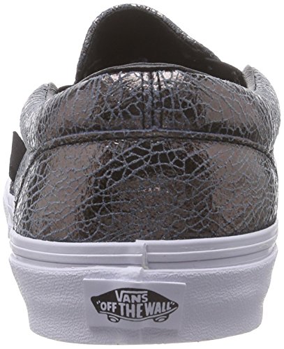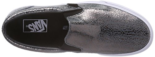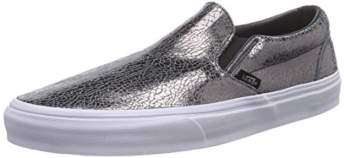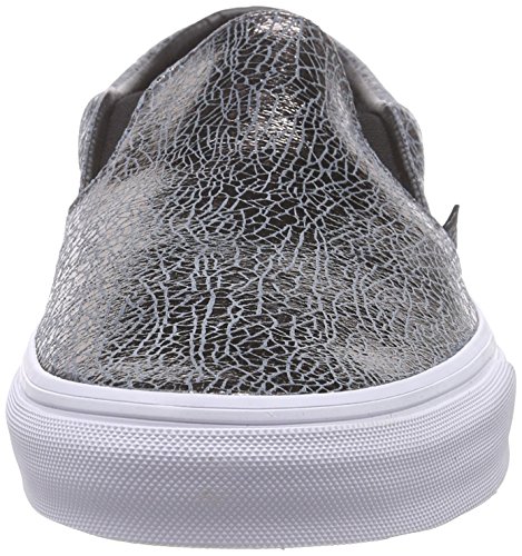 Vans Unisex Cracked Metallic Classic Slip-On Gunmetal/True White Sneaker - 4.5