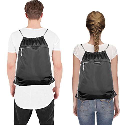 Gym Drawstring Backpack Bag for Women Men, Cinch String Sackpack with Pockets