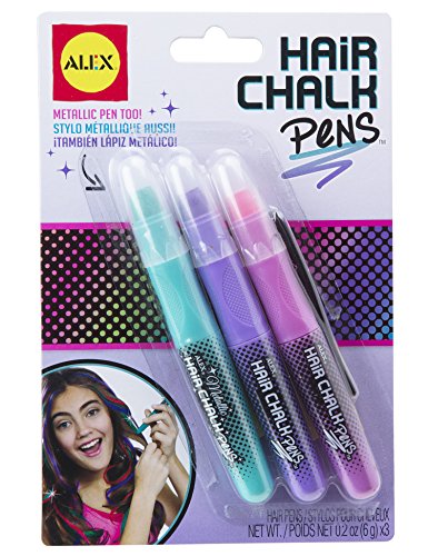 The ALEX Toys - Spa Fun, Hair Chalk Pens, Violet, 237V includes a package of (1) violet, (1) brightly colored and (1) metallic hair chalk pens. Apply to dry hair of any color. It easily washes out with shampoo! A fun activity and great way to add style to your look. Lip shimmer, bath gel, sparkle tattoos, hair chalk and designer nail appliques are the pampered girl's dream! Expressing your inner style is what the ALEX Spa collection is all about. The ALEX spa collection gives girls the freedom to creatively express their inner spirit and share it with friends. Finding that signature look, sparking flourish, or special lip gloss that has just the right glimmer has never been so easy or fun! The ALEX Toys - Spa Fun, Hair Chalk Pens, Violet, 237V is recommended for children age 8 and up. ALEX Toys takes the mission of providing children with quality creative products that foster personal expression and build self-esteem to heart! ALEX products are currently sold in over 80 countries worldwide in specialty toy and retail shops. Visit www.amazon.com/alex-brands for more information on Alex Brands and our best-selling line of educational and entertaining products for kids.Feature