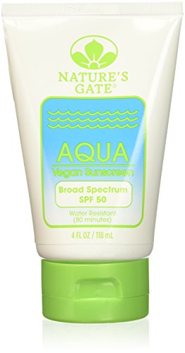 PRODUCT: Nature's Gate Natural Aqua Block Vegan Water Resistant Sunscreen Lotion is a trusted alternative for sun protection, Nature's Gate Sun Care is safe and gentle for the entire family, SPF 50, water resistant (80 minutes), 4 Ounce Recyclable Bottles (Pack of 3)