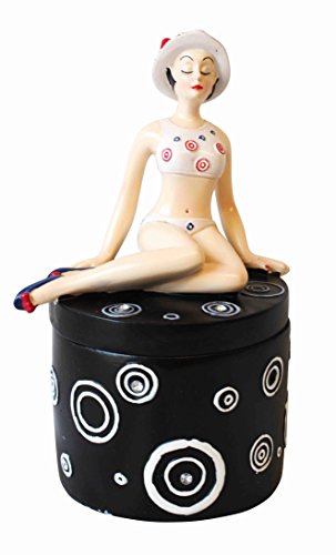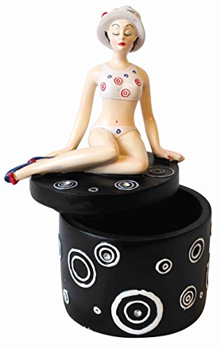 This black keepsake pot with girl figurine is an ideal gift item for your friend or significant other. It can fit small items and can easily be opened or closed. Black circles adorn the sides as well as the top of the pot, with glass-like beads for a bit more visual finesse. Includes: 1x Keepsake Pot