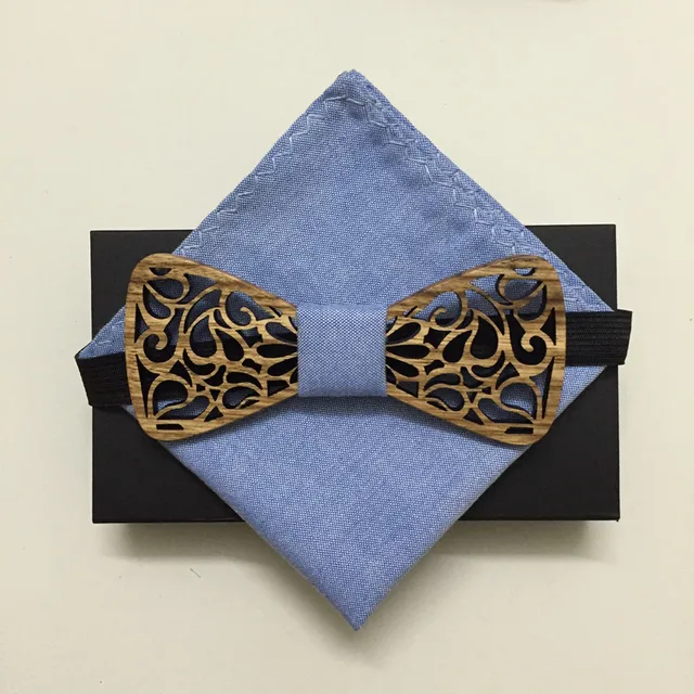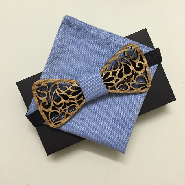중공 수제 나무 나비 넥타이 나비 넥타이 솔리드 블루 포켓 광장 남성 나무 나비 넥타이 무료 배송