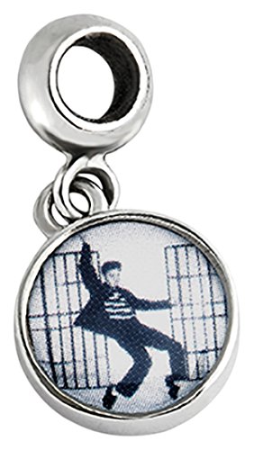 Sterling silver star charm featuring Elvis in the jail house rock. The opening is compatible with and will fit most major brands of bracelets.