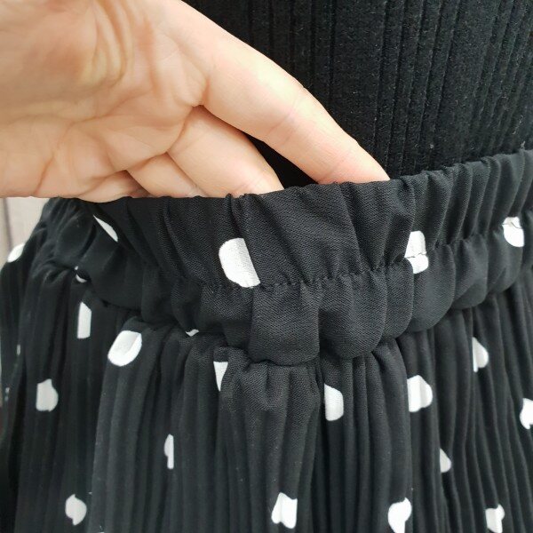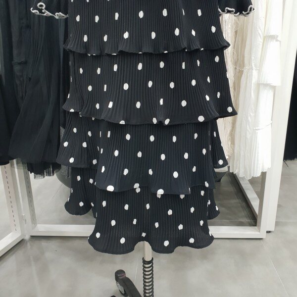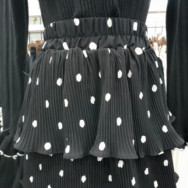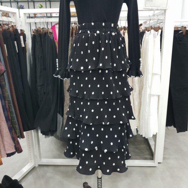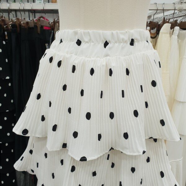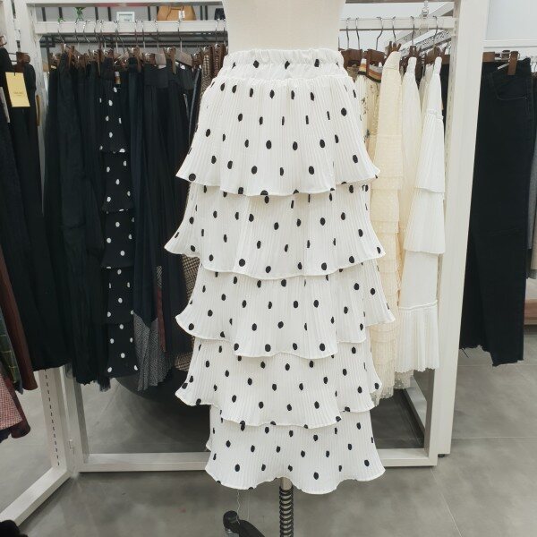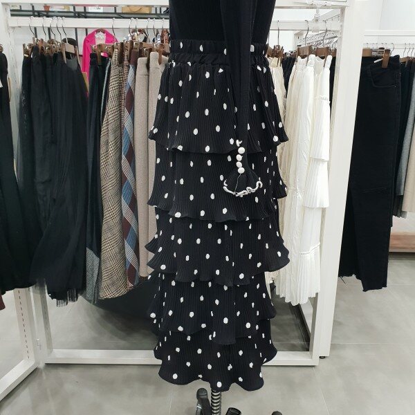 귀여운 도트무늬의 5단 프릴 롱스커트