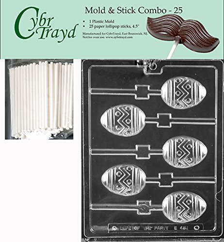 CybrTrayd 45St25-E481 Zigzag Egg Lolly Chocolate Candy Mold with 25 4.5" Lollipop Sticks, Clear