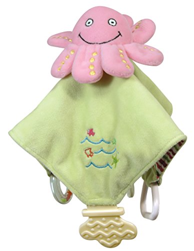 STEPHAN BABY GO FISH PLUSH CHEWBIE ACTIVITY TOY AND TEETHING BLANKIE, PINK OCTOPUS