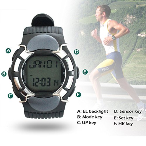 - Feature : 1.EL back light / 2.30 meters waterproof / 3.Time,Date,Week display; Alarm; Stopwatch; Personal Information set; Temporary mode / 4.Calorie Counter Strapless Heart Rate Monitor Watch / 5.Calculate Heart Rate (HR) at any time More Accurately