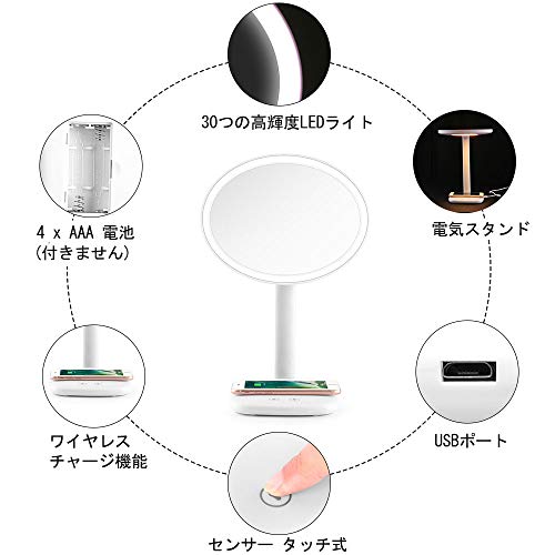 【ワイヤレス充電機能】新しいワイヤレスデザイン、台座にワイヤレスチャージ機能がありますが、化粧するとき、スマホに給電することもできます。