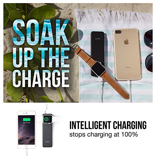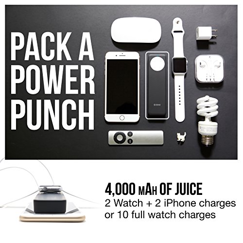 CHARGING FREEDOM: Cordless charging power bank. Pocket sized charging puck. Just drop your Apple Watch on the charging pad and your watch will wirelessly charge. USB port allows you to connect a lightning charger to simultaneously charge your iPhone. 4000 mAh provides you with 10 full charges for your Apple Watch, or 2 full charges for both your Watch and iPhone if used together.