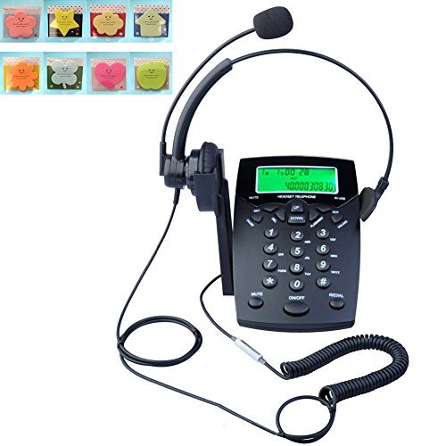 LeeKer LK-P016B DialPad Telephone with Headset Call Center Corded Phone Tone Dial Key Pad with Caller ID Redial(Black)