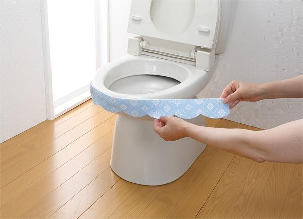 | 便器の側面上部のふちに貼り、便器が汚れるのを防ぐテープです。テープ状になっているので、まわり全体の汚れを防いでくれ、面倒な便器そうじ、床拭きの手間が減ります。また、ハサミでカットして、必要な長さでお使いいただくこともできます。 |