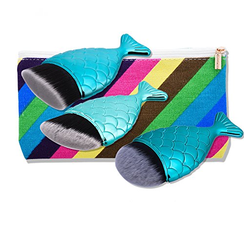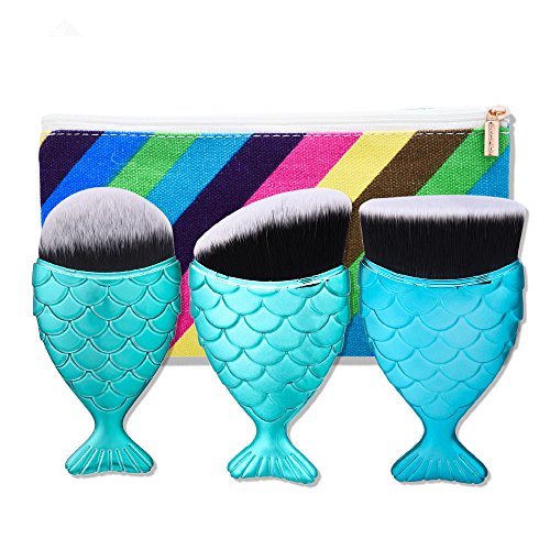 Mermaid Brushes Powder Blush Foundation Cosmetic Fish tail Cute Shape Brush All Style Makeup Tools Mermaid Brushes (Green)