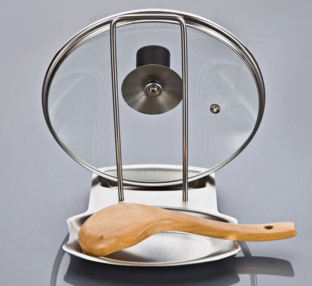 Stainless Steel Pot Lid Shelf Pan Cover Lid Rack Stand Spoon Holder Kitchen Tools