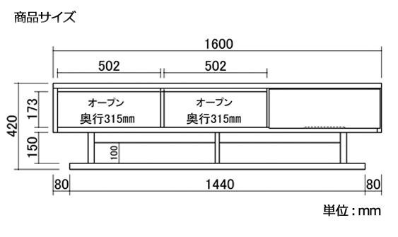 | サイズ | W1600×D400×H420mm 個装サイズ:162×42×44cm |