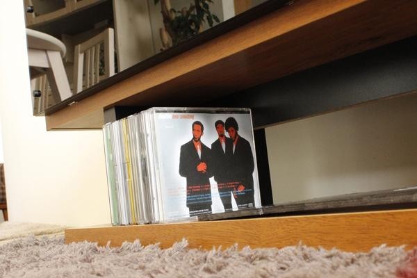 | ヴィンテージ調の木目がお洒落なテレビボード。下台には流行のサウンドバー型の横長スピーカーを設置することができ、空いたスペースにはDVD・CDをぴったり収納できます。また下台のサイドや奥部分のスペースには、意外と場所を取る電源タップを目立たないように配置できます。もちろん、録画機器・AV機器等の配線コードも裏側に。テレビ周りをスッキリ快適にしてくれます。 |