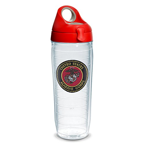 Tervis Marines Corp Emblem Water Bottle with Red Wb Lid, 24oz, Clear