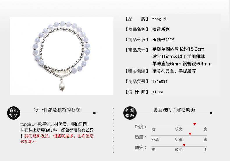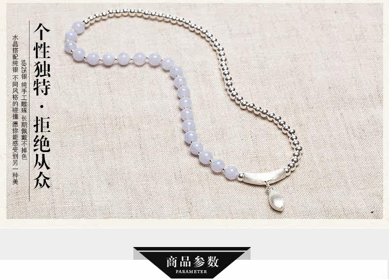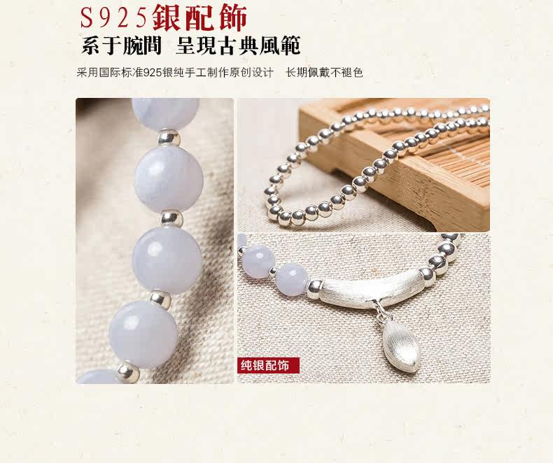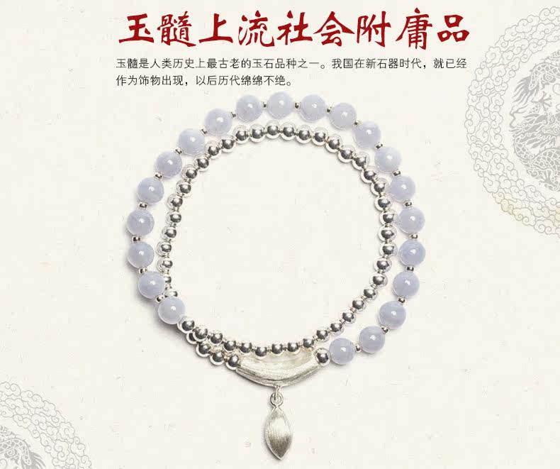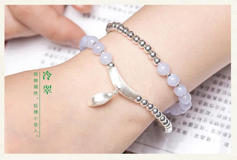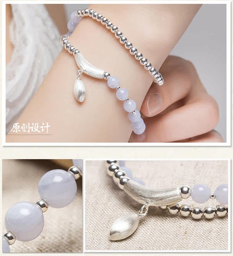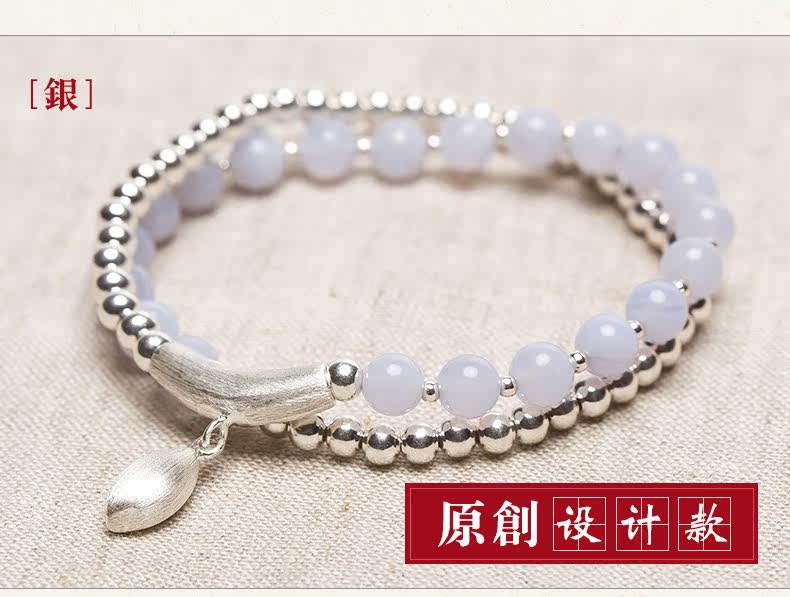 水晶手链多圈女韩版时尚百搭S925银珠蓝玉髓手串女生礼物