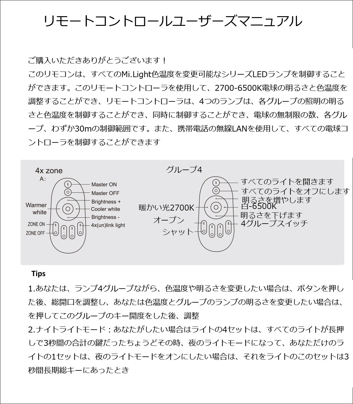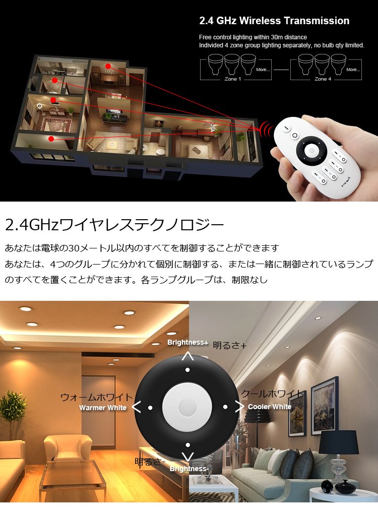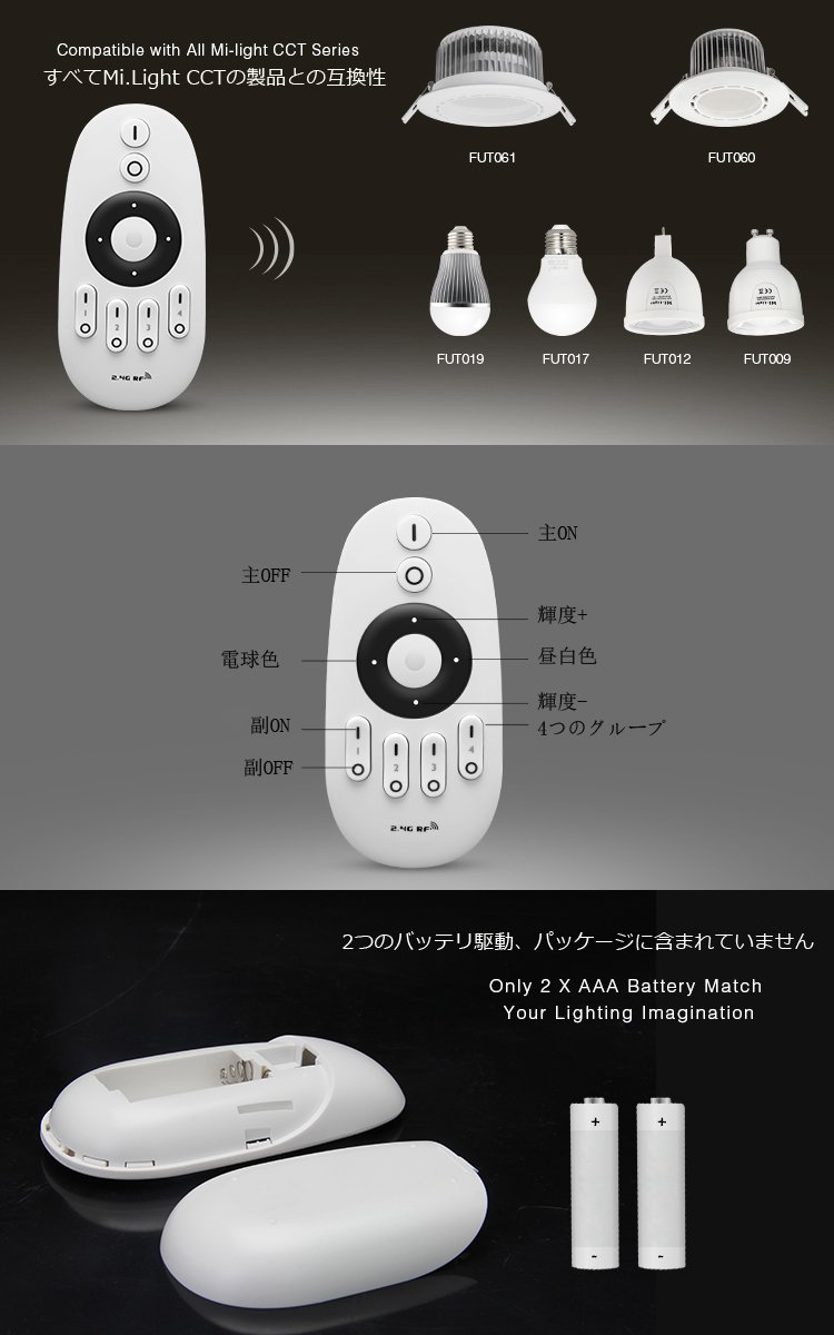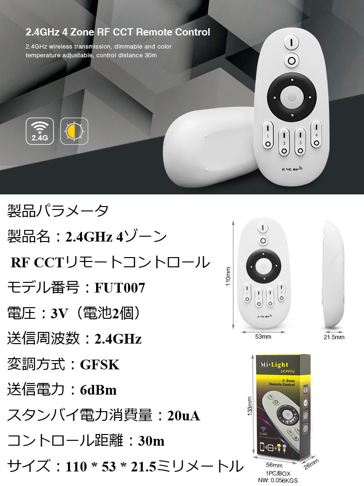 This is a remote controller of Mi.Light WW + CW color temperature adjustable led bulb, downlight and led strip light controller.