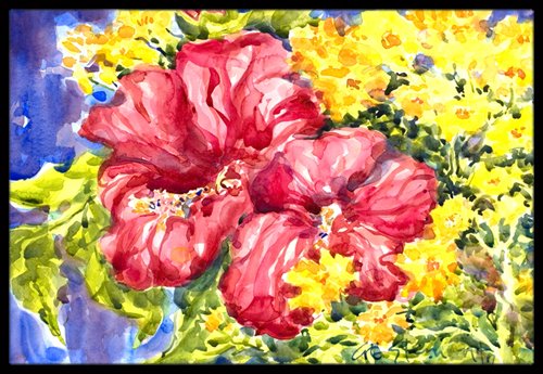Indoor/ outdoor floor mat 24 inch by 36 inch action back felt floor mat/ carpet/ rug that is made and printed in the USA. A black binding tape is sewn around the mat for durability and to nicely frame the artwork. The mat has been permanently dyed for moderate traffic and can be placed inside or out (only under a covered space). durable and fade resistant. The back of the mat is rubber backed to keep the mat from slipping on a smooth floor. Wash with high pressure from your garden hose or with a power was her. Use cleaner that does not produce suds.Feature