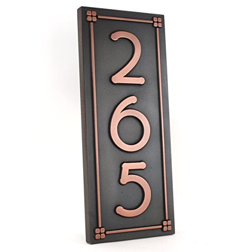 -. Feature : Handcrafted and made in the USA with products from the USA. Custom made for you. / Comes with keyhole style mounting and screws. Template is also included for easy installation by you / Made of 30 pound HDU (type of plastic) that won't warp, rot or promote insects and is fine outside. / Coated with a metal coating that won't flake or peel. Looks like cast but at fraction of the P.R.Ice. / Size is 7.5 x 18 x 1 inches. Lettering will be raised and plaque will be metal coated in our Copper finish. Any questions please EMAIL us. Thank you for your business!