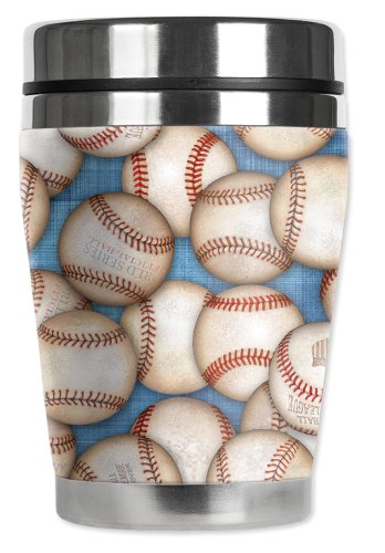 Mugzie Official Baseballs "Mini" Travel Mug with Insulated Wetsuit Cover, 12 oz, Black