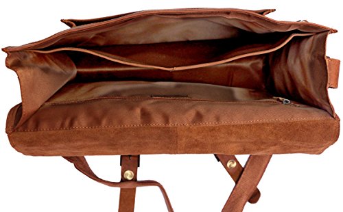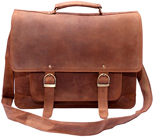 -. Feature : Full grain Crazy-Horse Genuine Cow Leather, 100% Brand New & High Quality, / 1 front big pocket, 2 inner compartment and 2 zipper pocket / Dimensions: 16 inches (length), 12 inches (height), 5 inches (depth) / Strong & durable brass fittings & buckles, quality zippers, heavy duty suede lining on flap and cotton lining inside / Closure: Snaps Hidden under Buckle, Adjustable shoulder strap and hand carry