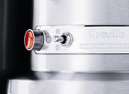 The Breville RM-800JEXL Certified Remanufactured Juice Fountain Elite with 1000 watts is super efficient. This model has an electronic motor that increases power under yield to maintain filter revolutions. It has two speeds for soft and hard fruits and a three inch feed tube which minimizes preparation and feeding time. Beautifully designed stainless die cast steel housing and motor body makes it a work of art on the countertop. While juicing, you may notice juice escaping between the plastic juicer cover and the stainless steel filter bowl surround. Try pushing the Food Pusher down more slowly and using the low speed. When large quantities of fruits and vegetables, especially those with high water content such tomatoes and watermelon, are fed into the Feed Chute at a rapid rate, the stainless steel filter basket converts these into juice so quickly that the force may cause leaking. This product carries a 90-day limited warranty.Feature