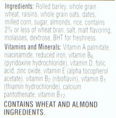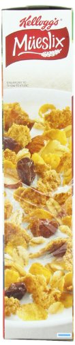 -. Feature : Pack of five, 15.3-ounce boxes of Kellogg's Mueslix / Toasted whole barley, whole oats, and whole wheat mixed with raisins, dates, and almonds / A good source of 11 essential vitamins and minerals / Provides 100% daily recommended allowance of folic acid and vitamins B6 and B12 / A healthy, low fat, fiber-rich way to begin your day